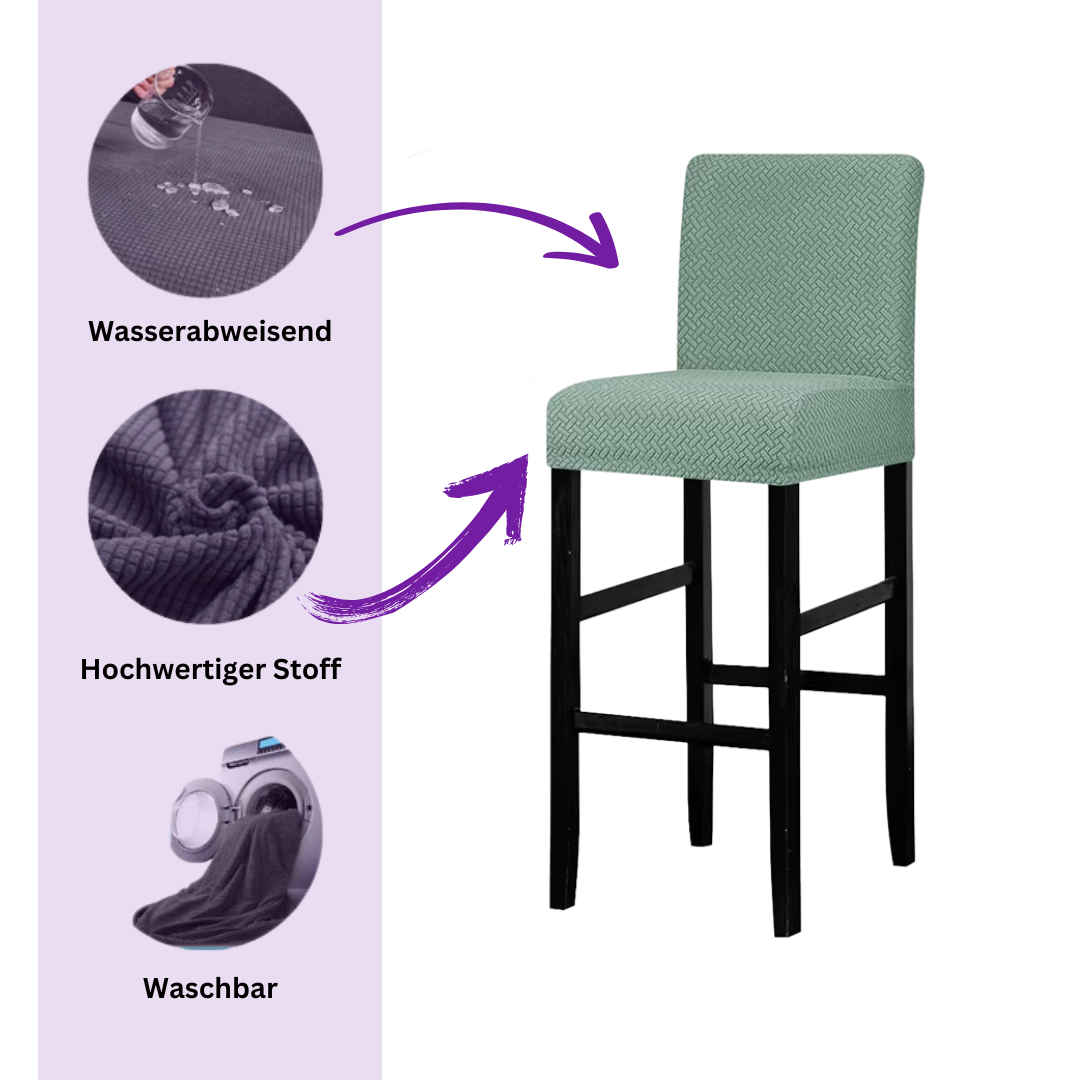 Unsere Barhocker-Bezüge sind bis zu 4-Mal dicker als herkömmliche Bezüge und lassen sich bei Bedarf ganz bequem in der Waschmaschine waschen. So riechen deine Stühle immer angenehm frisch und sehen dabei wie Neu aus.