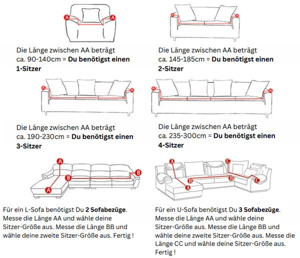 Grundsätzlich passen die Sofabezüge für alle gängigen Sofatypen: